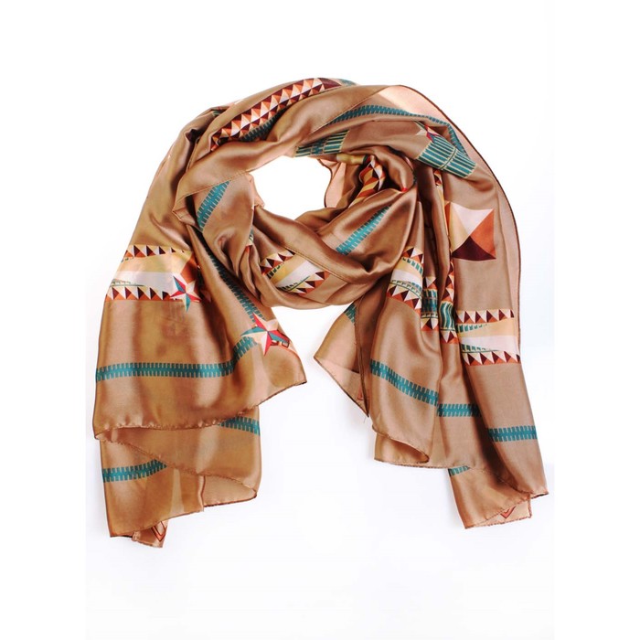 Палантин женский, размер 180х90 см, K0518OP247 бежевый, зелёный