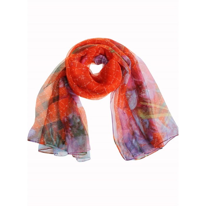 Палантин женский, размер 180х90 см, KSH3516 оранжевый, фиолетовый