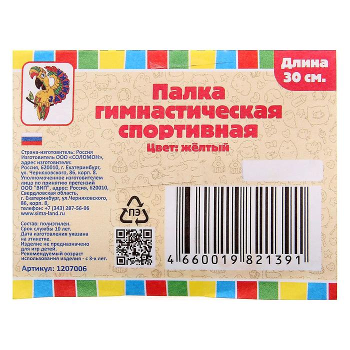 Палка гимнастическая 30 см, цвет: желтый