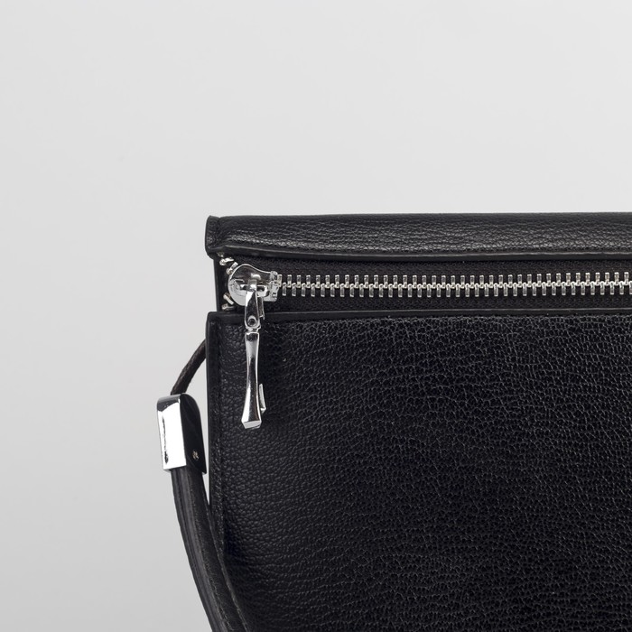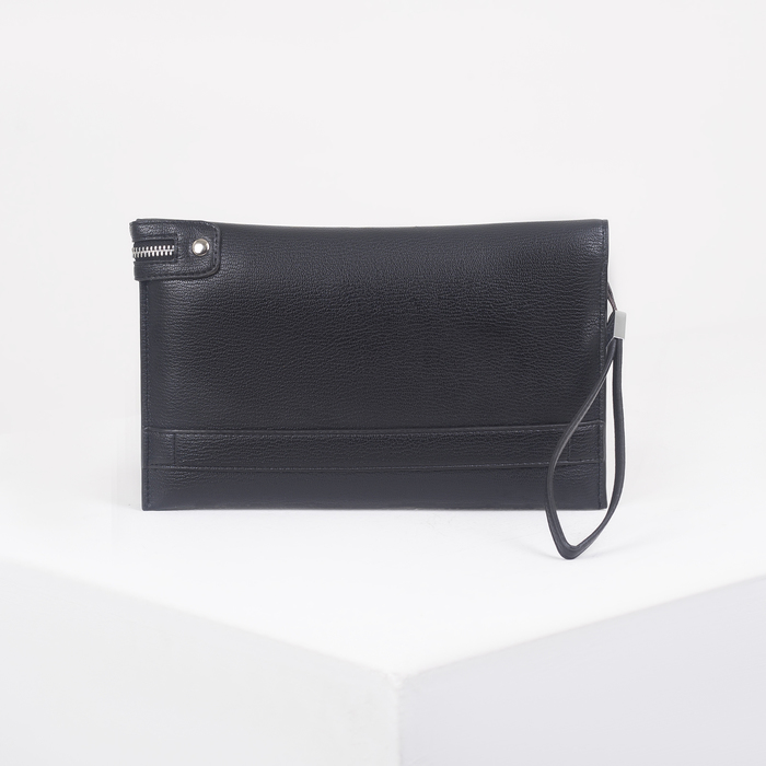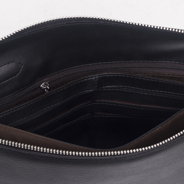 Папка деловая, 3 отдела на молнии, хлястик, с ручкой, цвет чёрный