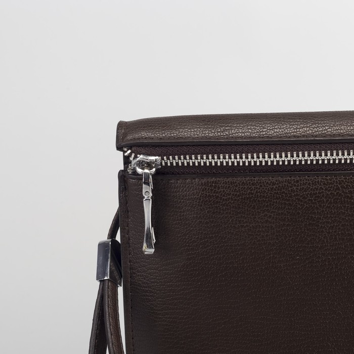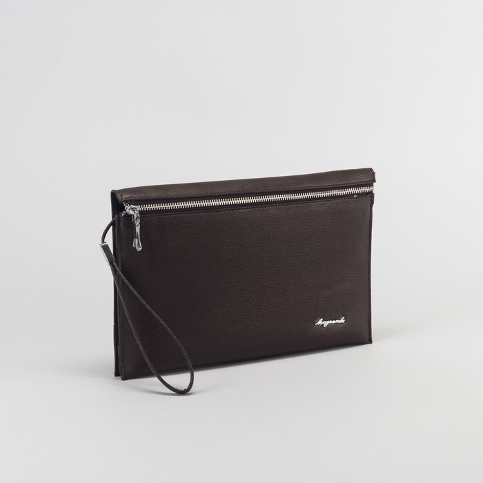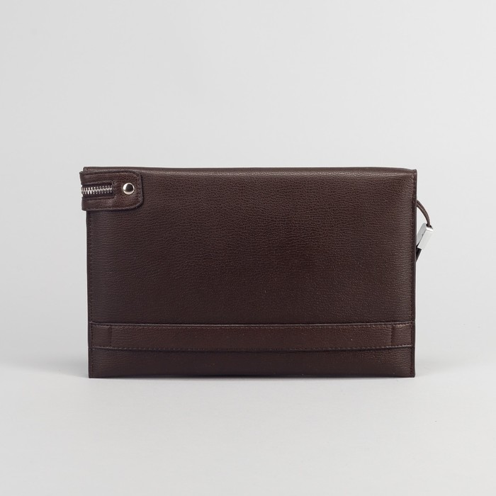 Папка деловая, 3 отдела на молнии, хлястик, с ручкой, цвет кофе