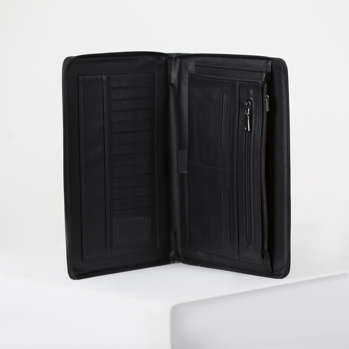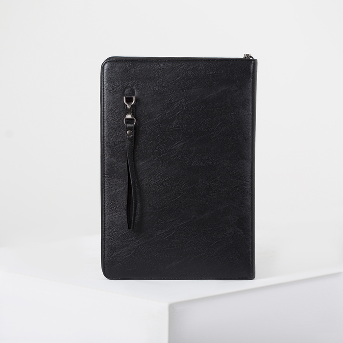 Папка деловая, отдел на молнии, с ручкой, цвет чёрный