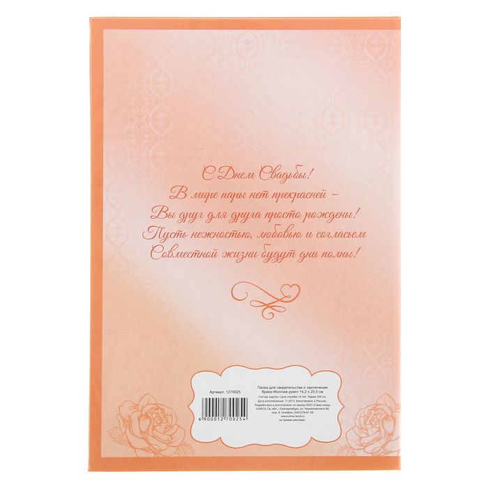 Папка для свидетельства о заключении брака — наилучшее обрамление первого совместного документа молодой семьи. Она подчеркнёт торжественность бракосочетания и будет напоминать вам о светлом дне свадьбы!