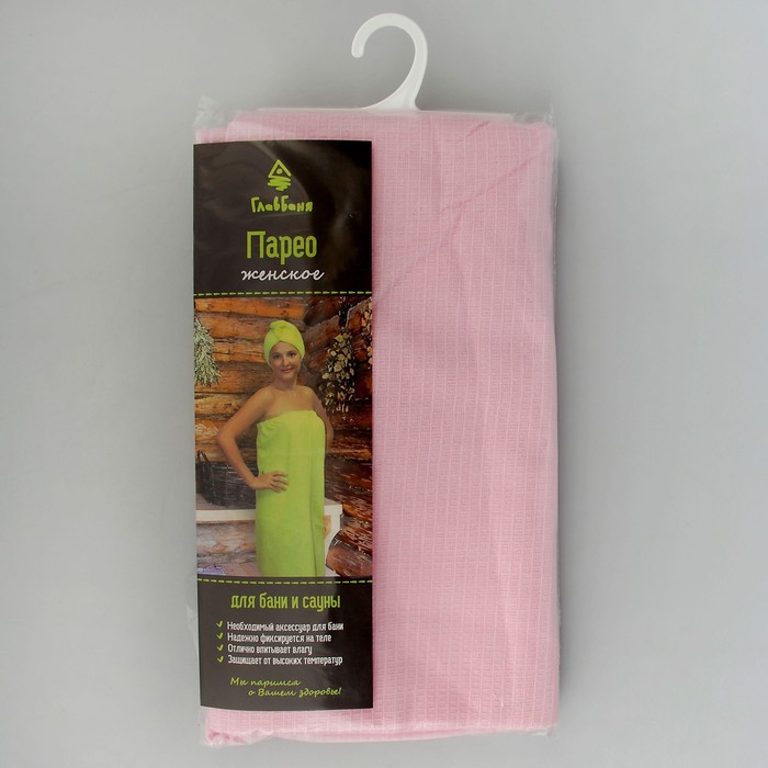 Парео является женским банным атрибутом. Аксессуар производится из натуральных тканей, он приятен к телу и хорошо впитывает влагу. Изделие снабжено резинкой и застёжкой-липучкой, поэтому надёжно закрепляется на теле и не спадает.