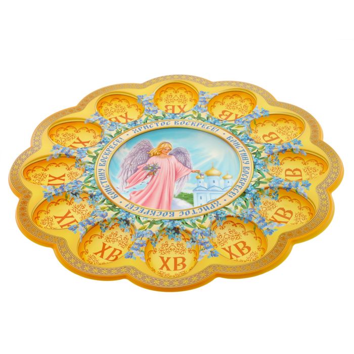 Пасхальная подставка на 12 яиц и кулич "Христианский ангел"