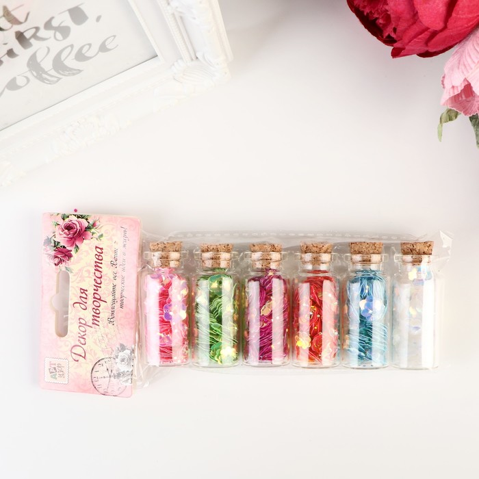 Пайетки в баночке "Цветы" 3 гр набор 6 шт 17,5х8 см