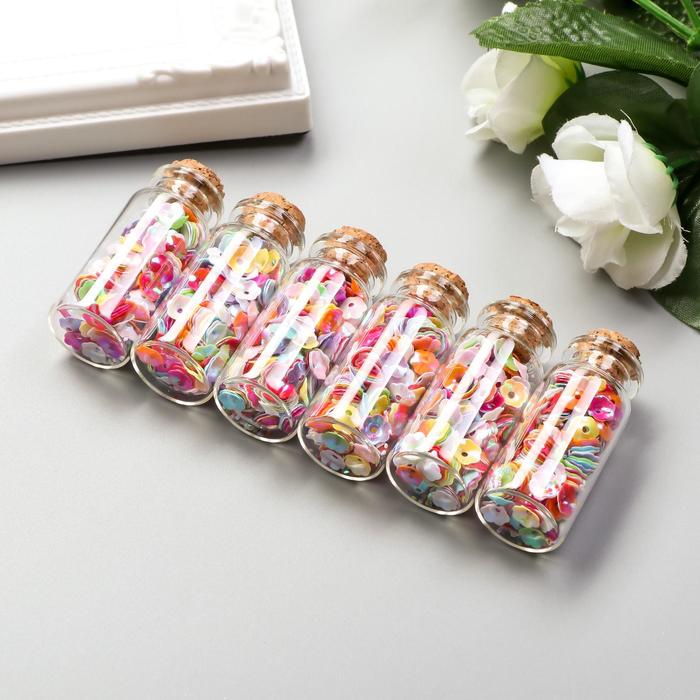 Пайетки в баночке "Цветы объёмные" 3 гр набор 6 шт 17,5х8 см