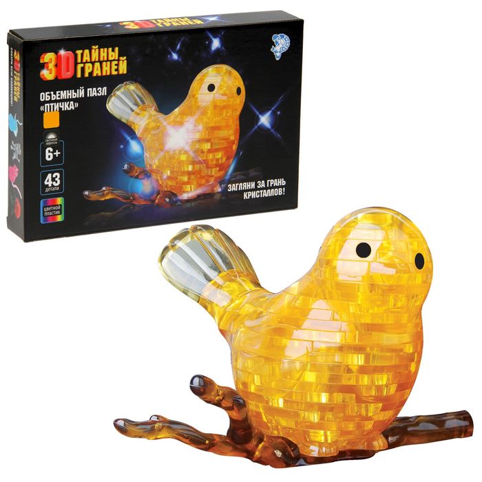 Пазл 3D кристаллический, "Птичка", световые эффекты, 43 детали, цвета МИКС