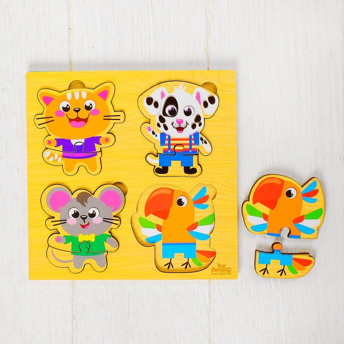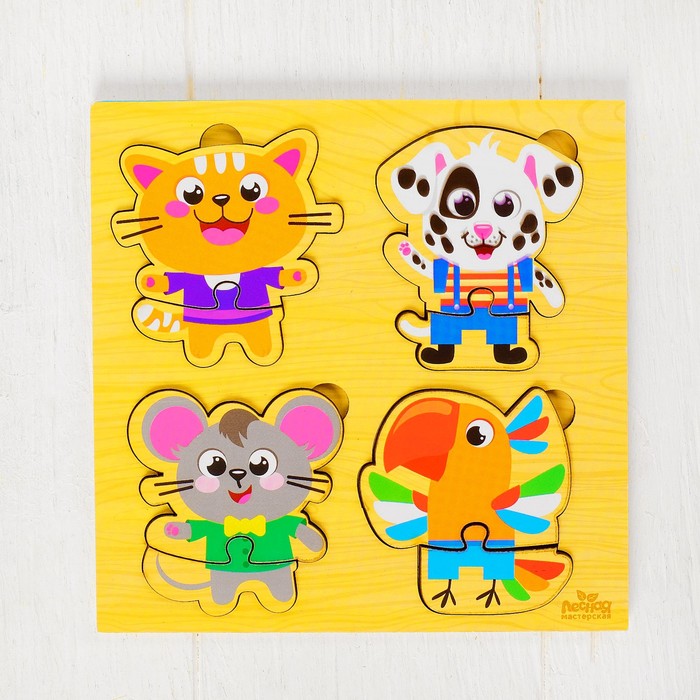 Пазл с элементами рамки-вкладки "Домашние животные", 15 х 15 см