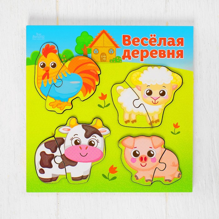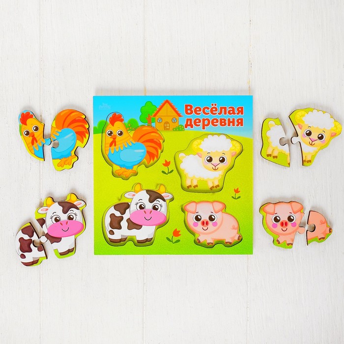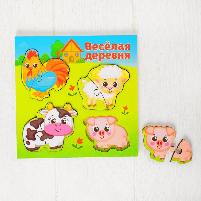 Пазл с элементами рамки-вкладки "Весёлая деревня", 15 х 15 см