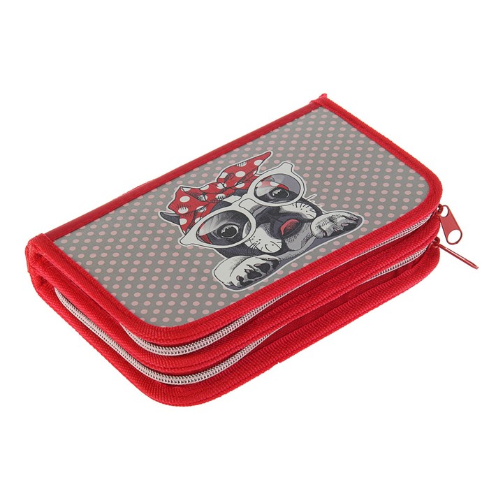 Пенал 2 секции 120x190 мм, откидная планка, ламинированный картон «Бульдожка»