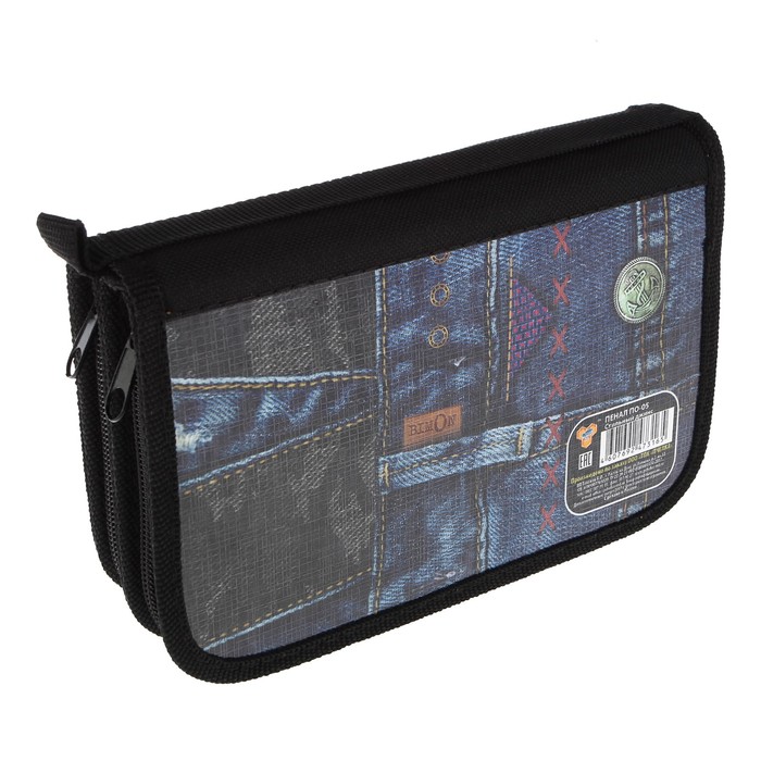 Пенал 2 секции 120x190 мм, откидная планка, ламинированный картон "Стильный джинс"
