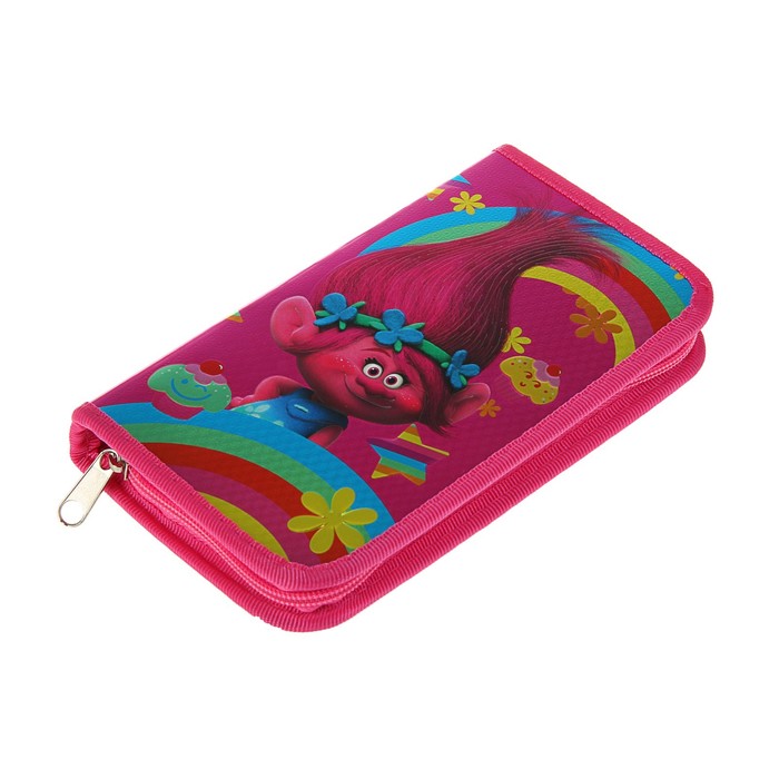 Пенал с наполнением 1 секция 110х195 мм Trolls, 9 предметов, фольга + конгрев, полипропилен