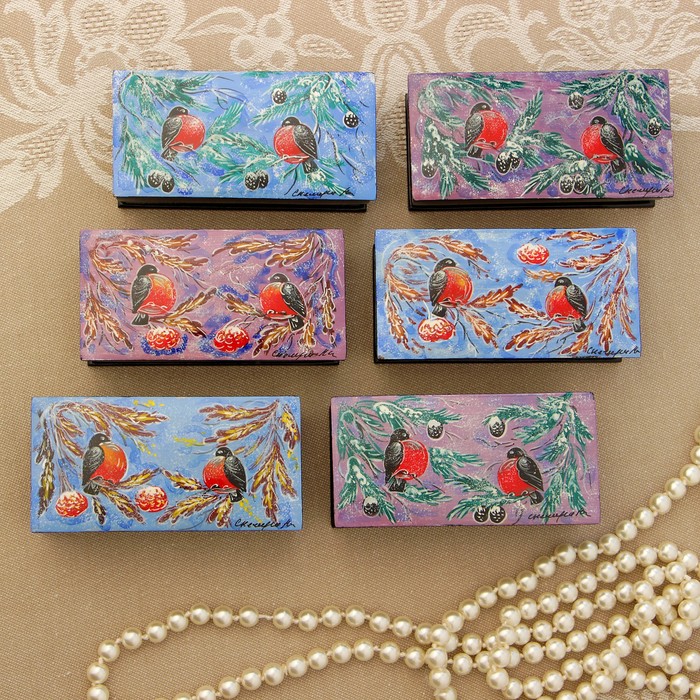 Пенал-шкатулка "Снегири" 5х10 см, ручная роспись