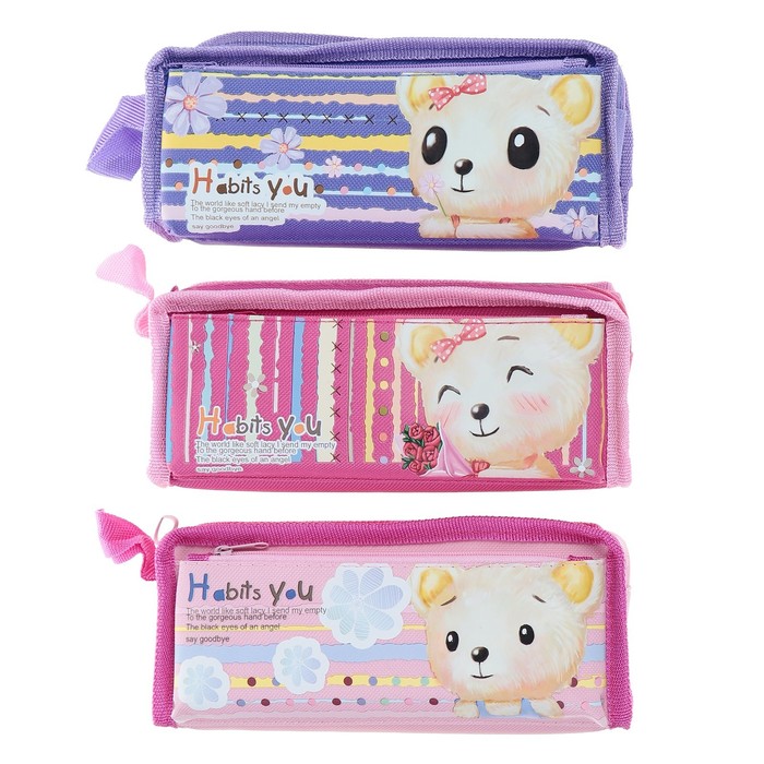 Пенал школьный на молнии 2 отделения МИКС Ассорти