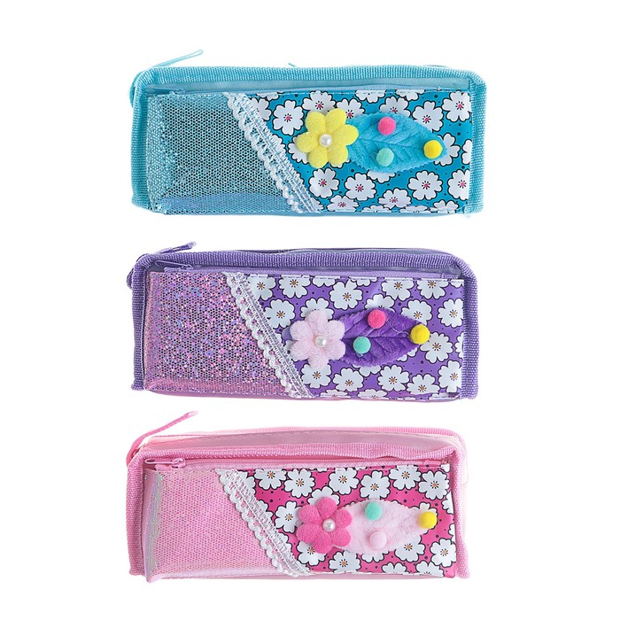 Пенал школьный на молнии 2 отделения МИКС Цветы