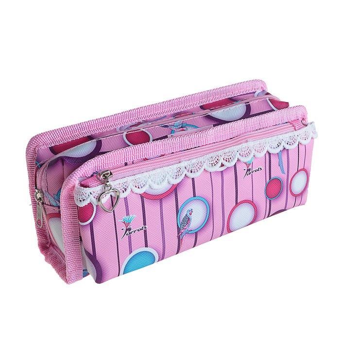 Пенал школьный на молнии 2 отделения МИКС Попугай