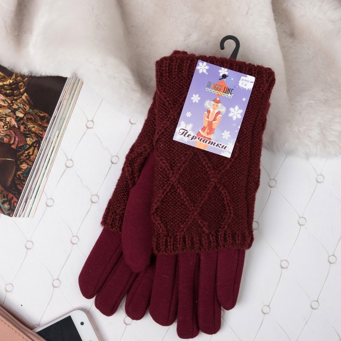 Перчатки-митинки женские ПЖБ3835 цвет бордовый, р-р 18-20