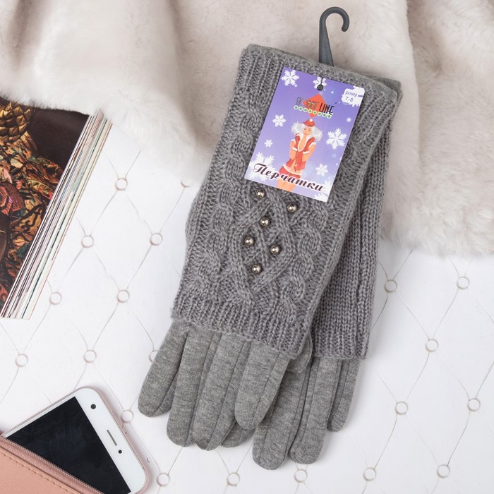 Перчатки-митинки женские пжб3838-7 цвет с.серый, р-р 18-20