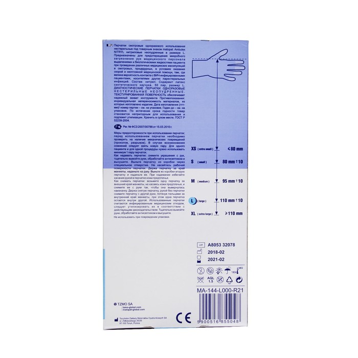 Перчатки нестерильные Ambulex Nitryl нитриловые неопудренные р. L, 100шт — это изделия, которые обеспечивают безопасность в лечебно-профилактических учреждениях.