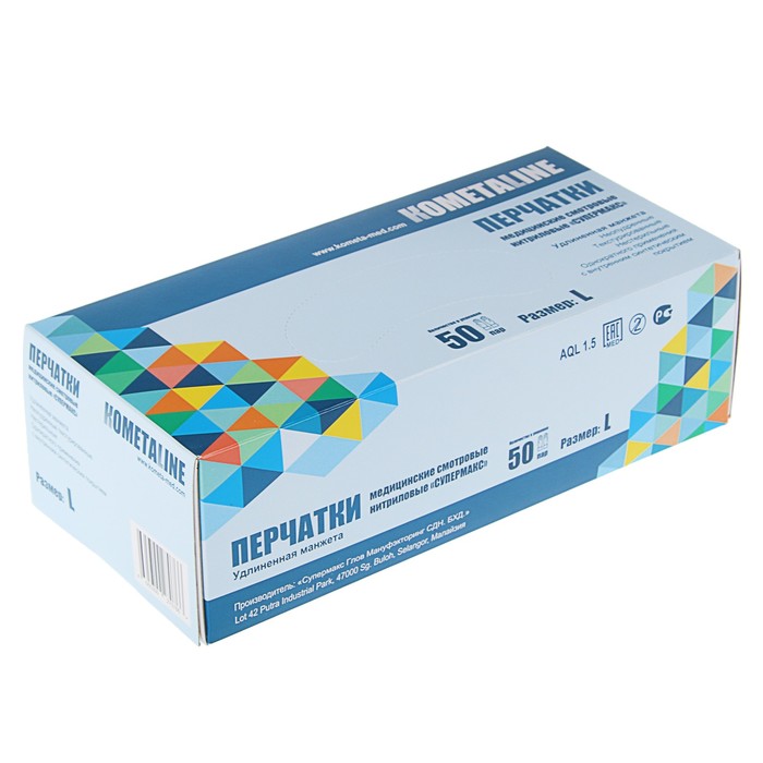 Перчатки «Супермакс» нитриловые голубые с удлиненной манжетой нест. L