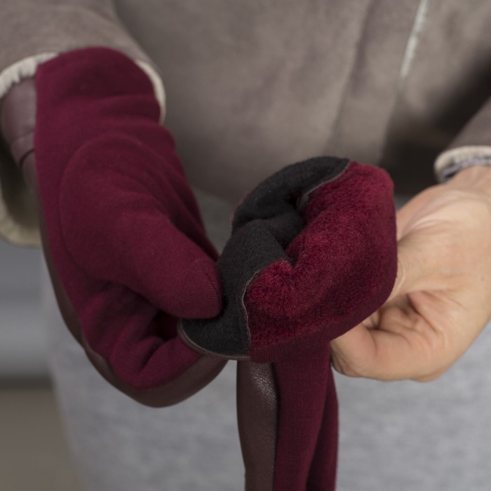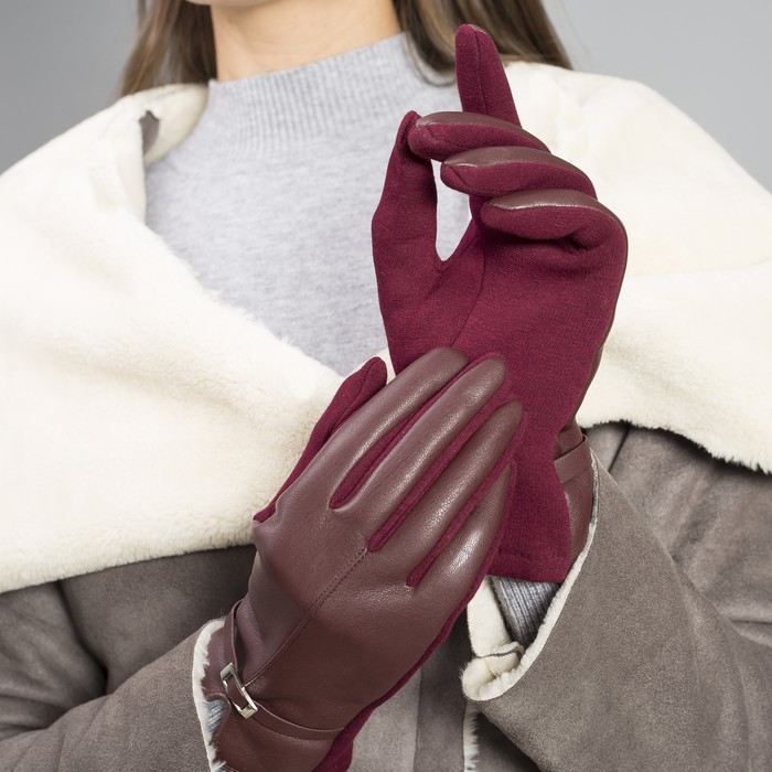 Перчатки женские, безразмерные, пряжка, без подклада, цвет бордовый