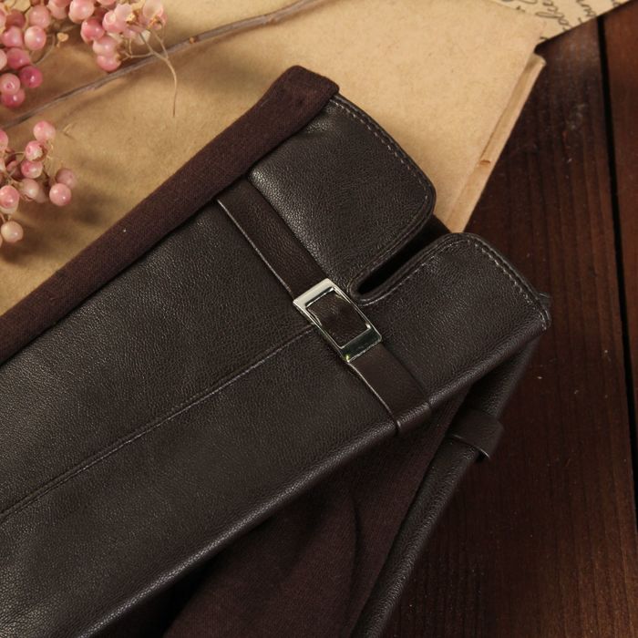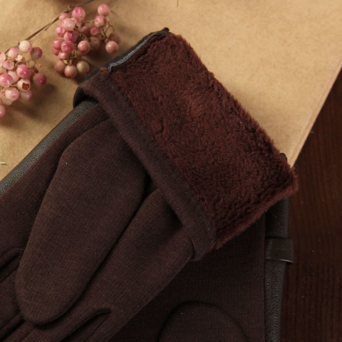 Перчатки женские, безразмерные, пряжка, без подклада, цвет коричневый