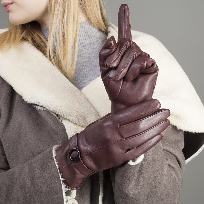 Перчатки женские, пряжка, размер 7, с подкладом, цвет бордовый