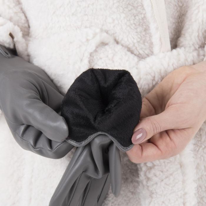 Перчатки женские, размер 6.5, пряжка, с подкладом, цвет серый