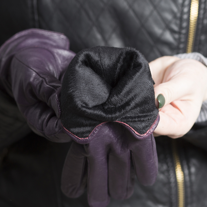 Перчатки женские, размер 6.5, с подкладом, цвет фиолетовый