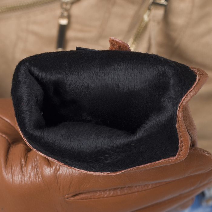 Перчатки женские, размер 6.5, с подкладом, цвет коричневый