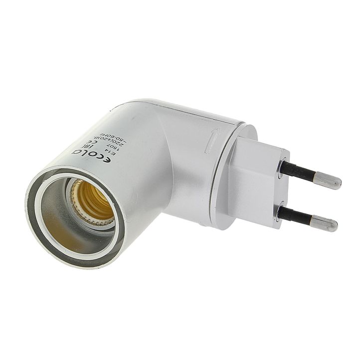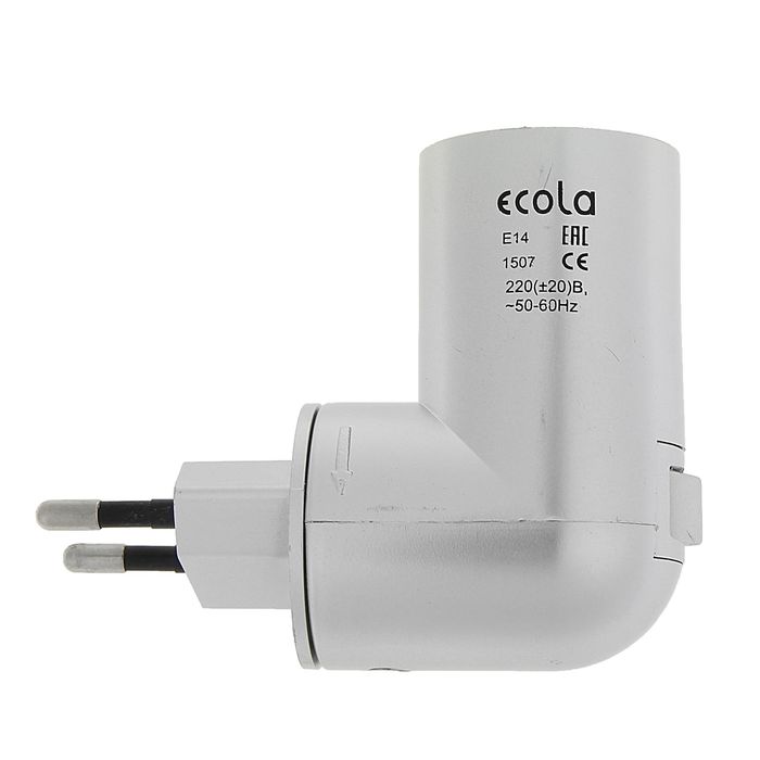Переходник Ecola, вилка-патрон, E14, 60х83 мм, с выключателем, цвет серебро