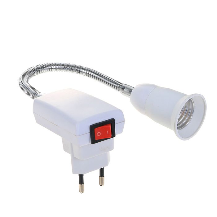 Переходник вилка-патрон E27 гибкий 200 мм c выключателем, белый