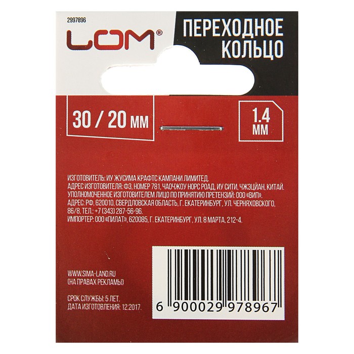 Переходное кольцо LOM 30/20 для пильных дисков, 1,4мм