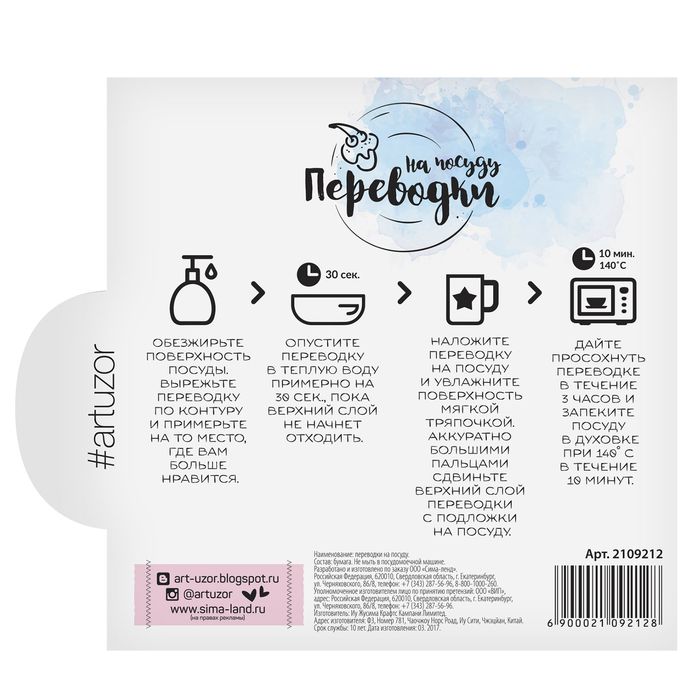 Подробную инструкцию по деколи можно найти на обратной стороне упаковки, а также смотрите видеоурок по ссылке на главной фотографии.