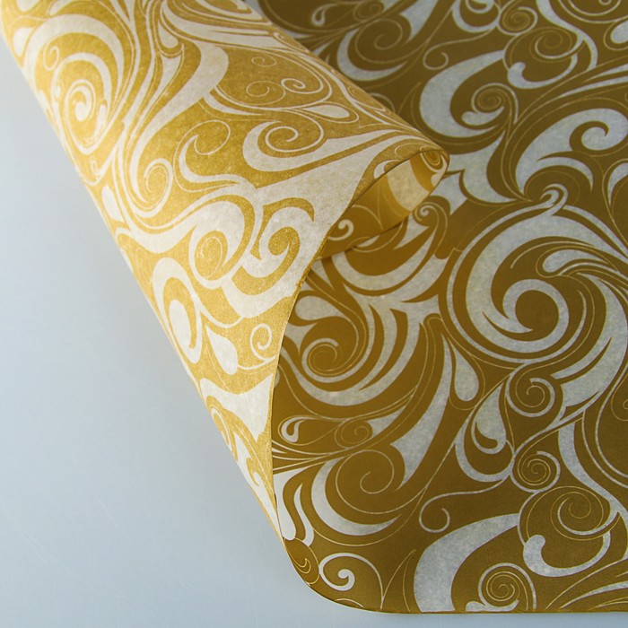 Пергамент флористический вощеный "Завитки", золото, 0,5 х 10 м