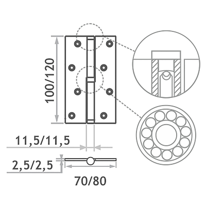 Петля 750-5"-FHP-ECO, правая 120х80х2.5 мм, цвет бронза