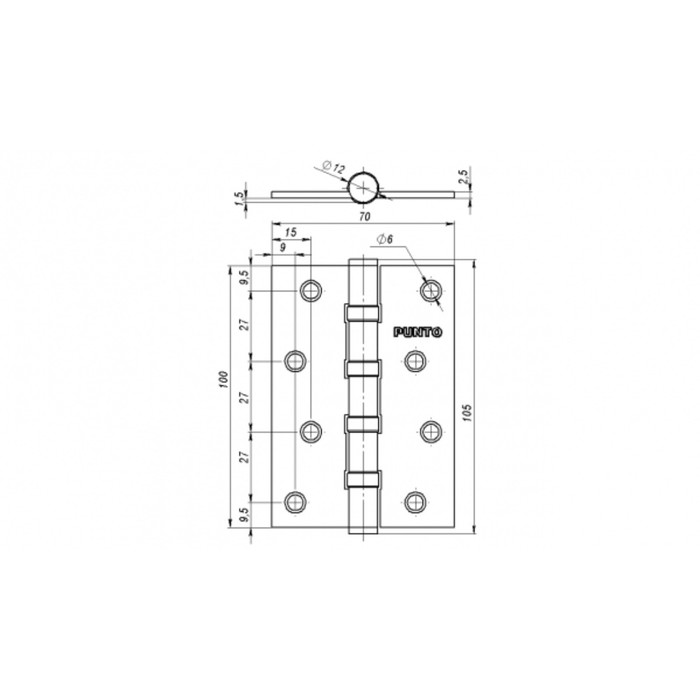 Петля универсальная Punto 4B SB, 100х70х2.5 мм, цвет матовое золото, 2 шт.