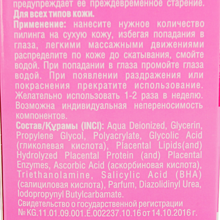 Используйте Пилинг-скатка для лица и тела Секреты Лан "Плацентарный", регенерирующий, 100 гр для регулярного ухода. Средство содержит особые компоненты, которые удаляют отмершие клетки, устраняют неровности и шероховатости с поверхности лица, делают его гладким и ухоженным.
