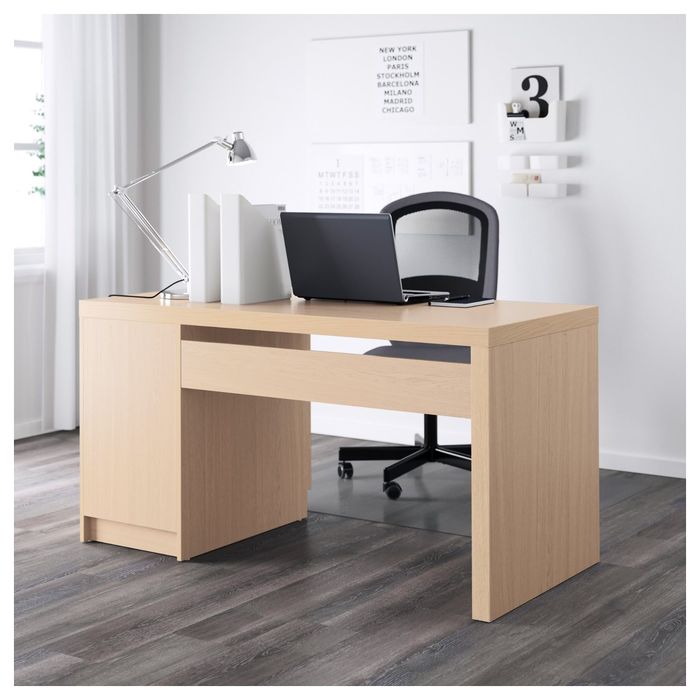Письменный стол, дубовый шпон, беленый МАЛЬМ