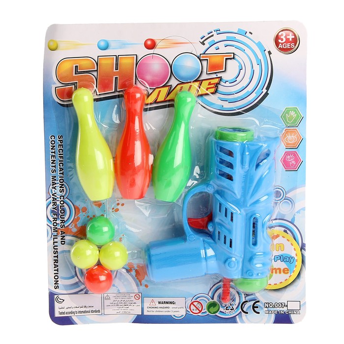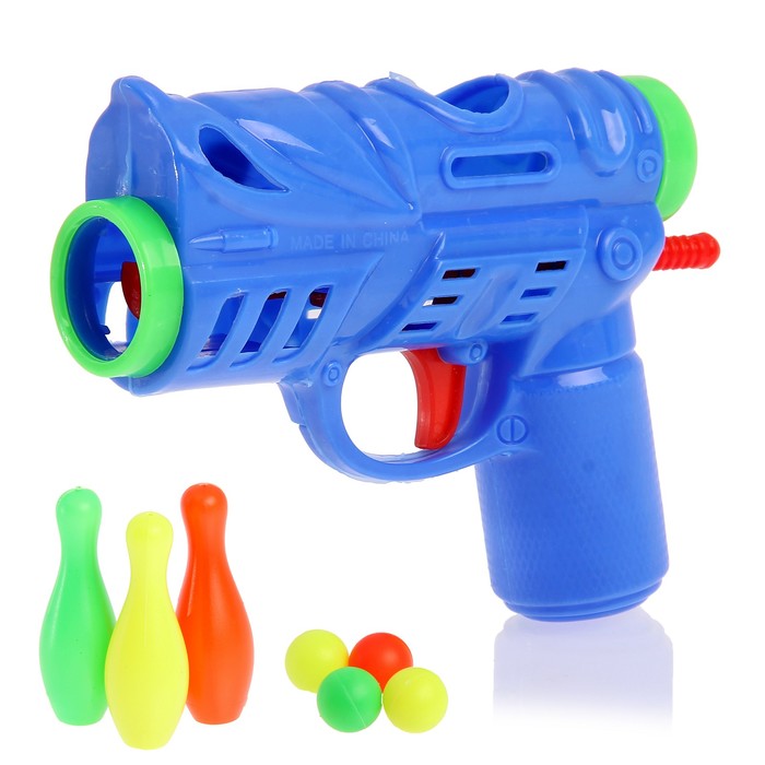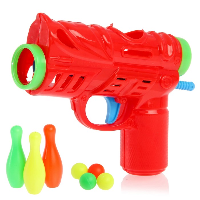 Пистолет "Весёлый боулинг", с кеглями, стреляет шариками, цвета МИКС