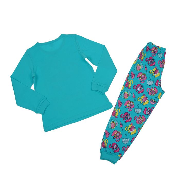 Пижама для девочки, рост 104 см (56), цвет бирюзовый, принт слоники