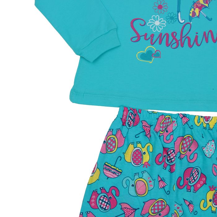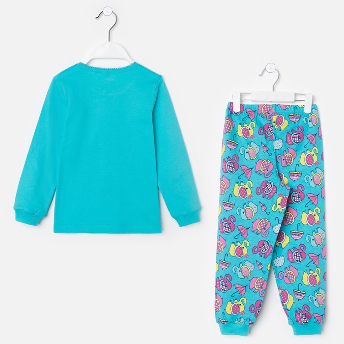 Пижама для девочки, рост 122 см (64), цвет бирюзовый, принт слоники
