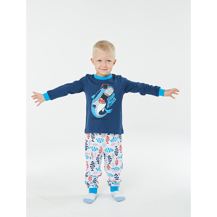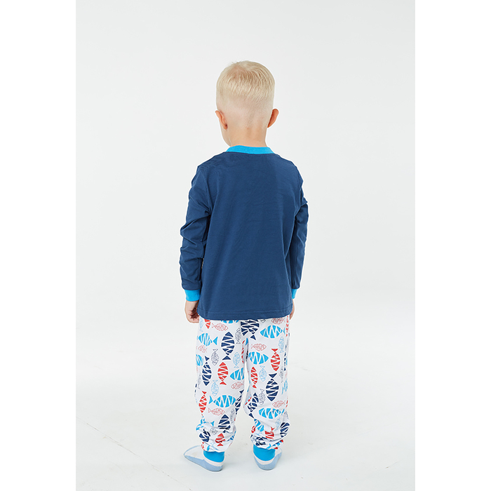 Пижама для мальчика, цвет темно-синий, рыбки, рост 98-104