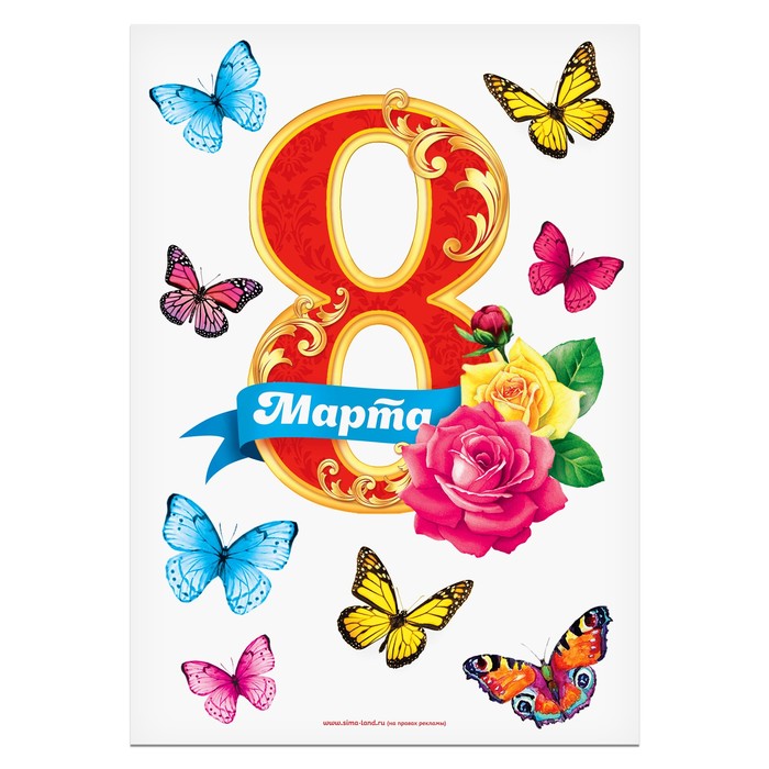 Плакат с элементами декора "8 Марта", бабочки