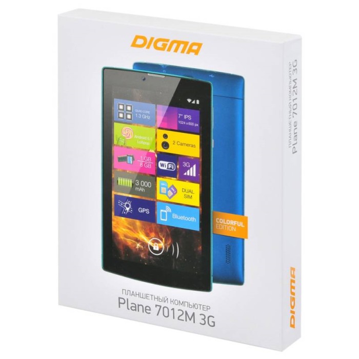 Планшет Digma Plane 7012M 3G 7" IPS,1024x600,1Gb+8Gb, 2Mp+0,3Mp,GPS,3000mAh, черно-голубой