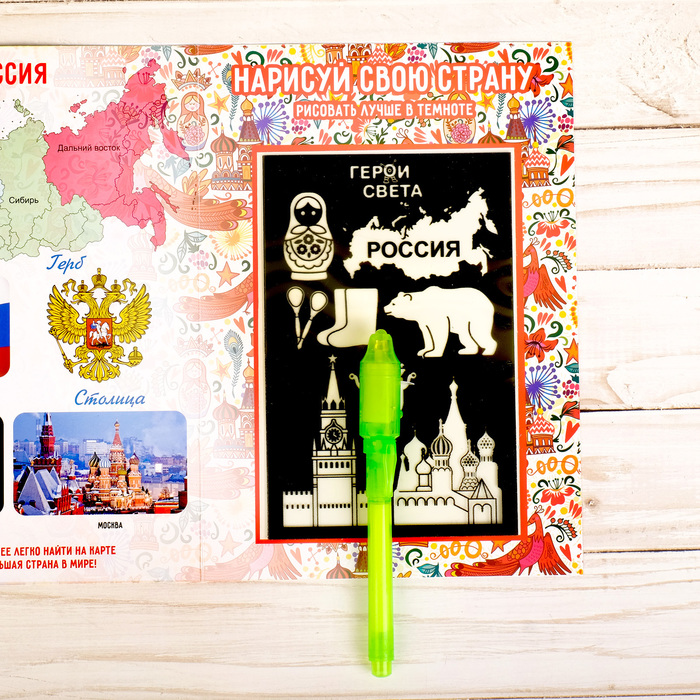 Запечатлеть просторы нашей родины теперь можно совсем по-новому! Краски, карандаши и маркеры уходят на второй план, когда ваш ребенок может создавать шедевры с помощью света. Набор для рисования разовьёт воображение ребёнка и даст ему знания о России, познакомит с национальными символами страны.