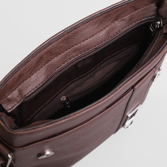 Планшет мужской, 1 отдел, 2 наружных кармана, длинный ремень, цвет кофе