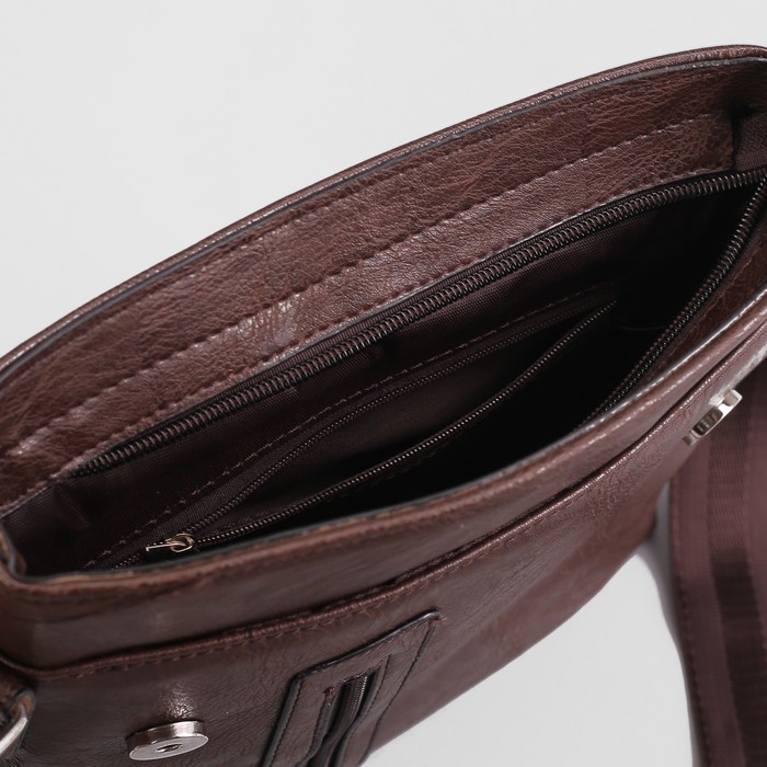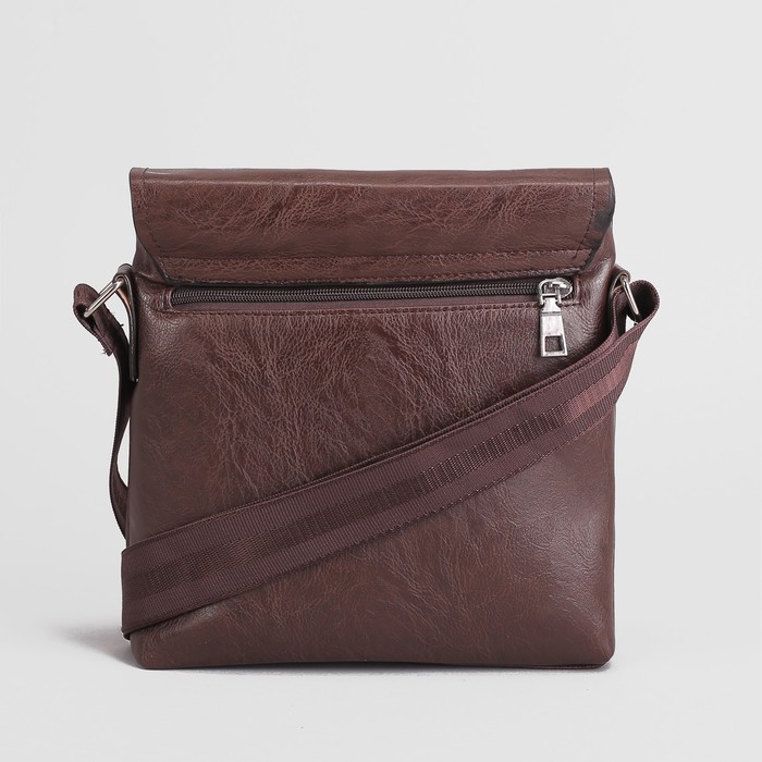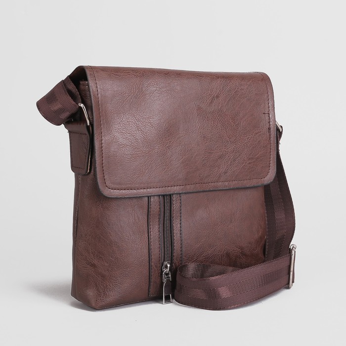 Планшет мужской, 1 отдел, 3 наружных кармана, длинный ремень, цвет кофе