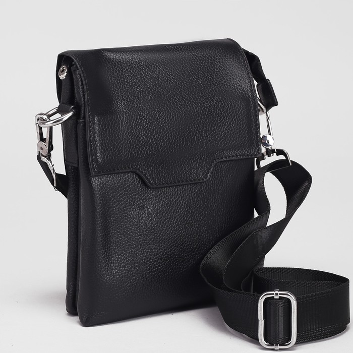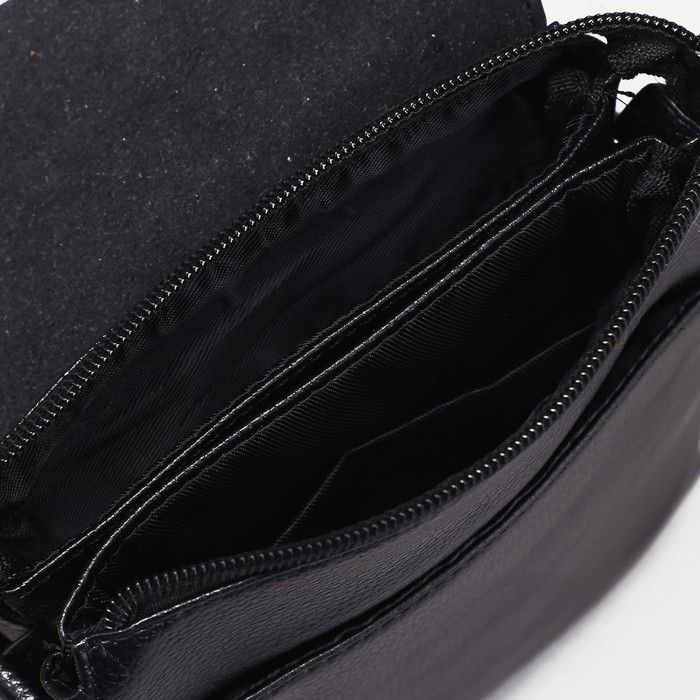 Планшет мужской, 2 отдела на молнии, 2 наружных кармана, регулируемый ремень, цвет чёрный